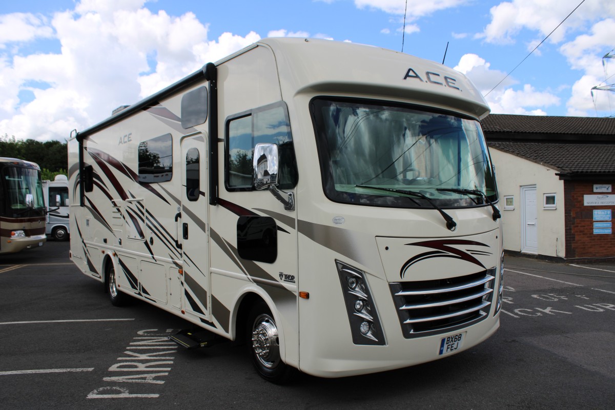 The evolution of a Class A and a Class C motorhome defines each A.C.E. model by Thor Motor Coach. From the power drop-down bunk with a ladder and the elegant fabric collections to the Kibble Station, the Bird’s Eye Window, and the Pet-Link multi-purpose tie-down, you will enjoy every single part of the A.C.E. Class A gas motorhome.