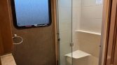 Luxury bathroom with a residential shower, Aqua-Hot system, washer & dryer