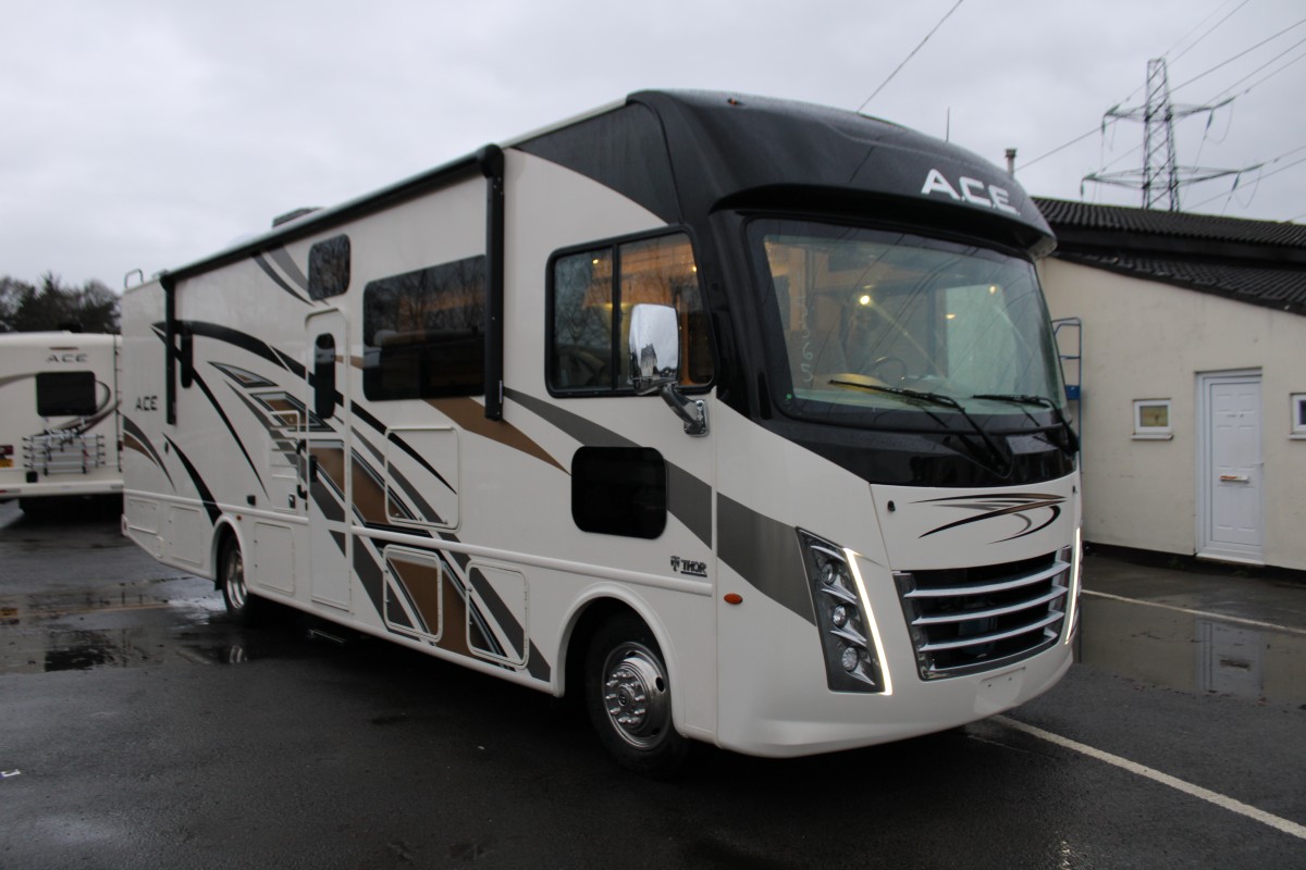 The evolution of a Class A and a Class C motorhome defines each A.C.E. model by Thor Motor Coach. From the power drop-down bunk with a ladder and the elegant fabric collections to the Kibble Station, the Bird’s Eye Window, and the Pet-Link multi-purpose tie-down, you will enjoy every single part of the A.C.E. Class A gas motorhome.