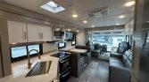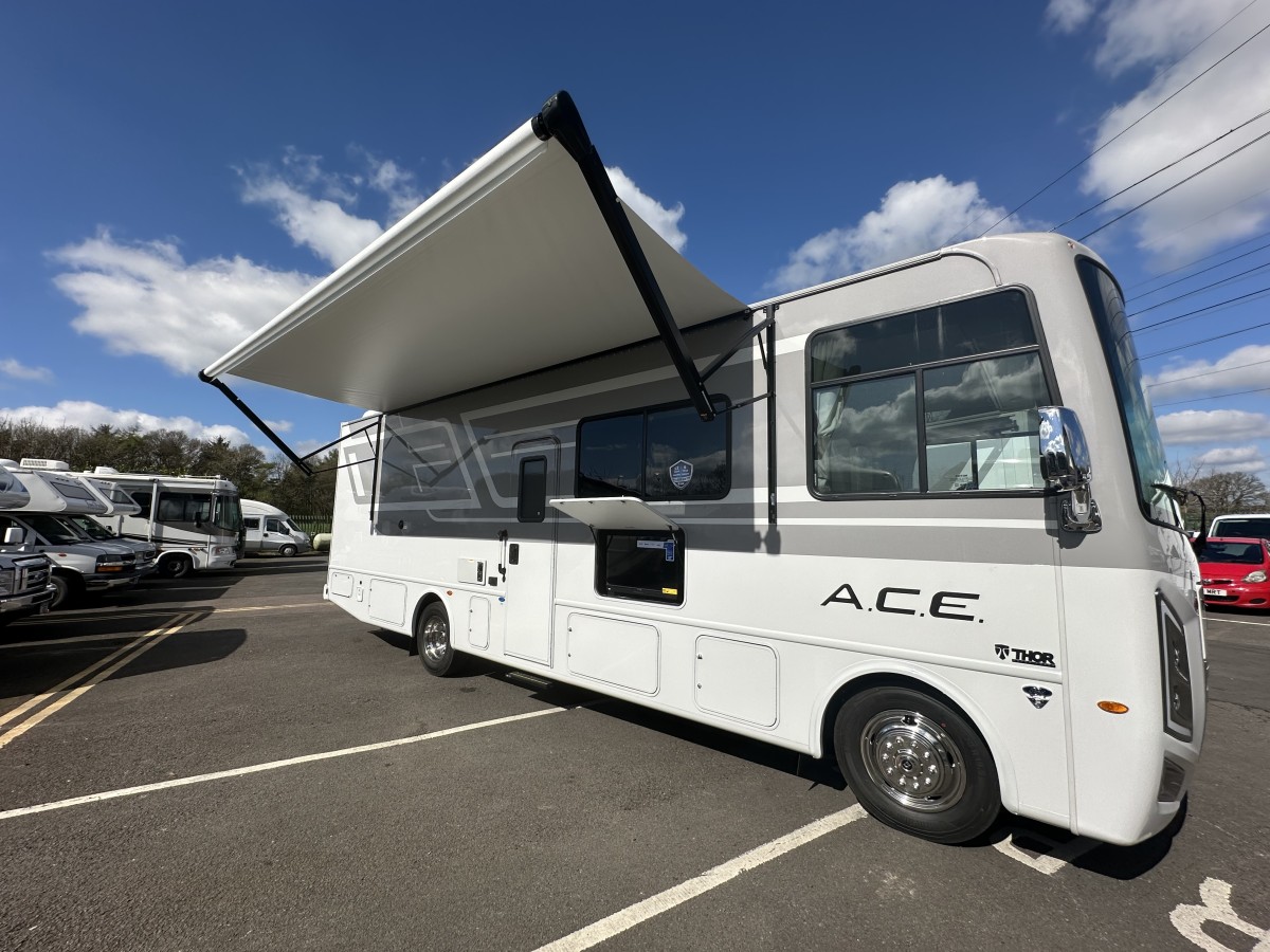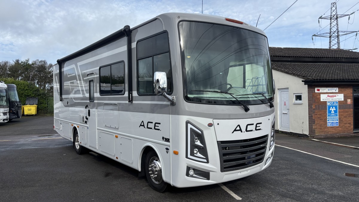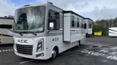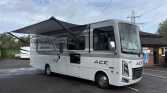 The A.C.E Class A gas motorhome is constructed with a welded tubular steel floor, vacu-bond laminated roof, walls and floor with block foam insulation, and a premium one-piece exterior roof for a coach made to last. You will love the pet-friendly features, like the Bird's Eye window, the Pet-Link multi-purpose tie-down and the Pull-Out Kibble Station with an FDS approved pet bowl liner. Each model includes an Flexi 4,000 petrol and LPG generator, and are pre-wired for solar charging. Some of the other convenient amenities you will find on the A.C.E are framed windows, a basement pass-through storage, and…
